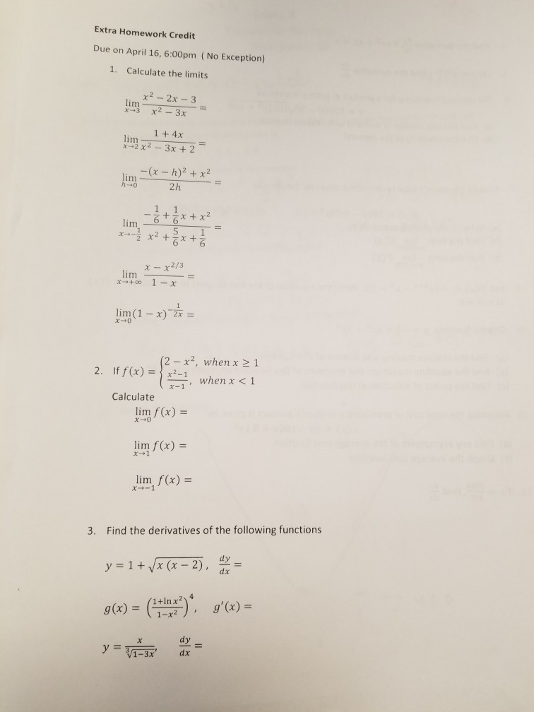 Math extra homework ii fall 2008 miscellaneous vector applications rotation of axes, and the general form of the conic in cartesian coordinates. Inside the archive, you will find a file called extra02.py, along with a copy of the ok autograder. Please try and work these indenite integrals very quickly. While we have an official platform to work with, i'll post in here the extra homework i told you about. Provide all answers on extra credit homework answers/quiz on canvas remember use the id_number of the selected records when you select.